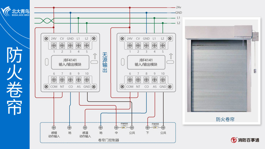 1、北大青鳥JBF4141輸入/輸出模塊如果接入控制強電信號,必須通過增加DC24V中間繼電器實現。
