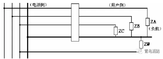 4)互感器用戶側零線有負載接到互感器前的相線,即保護區域以外的其他線路與用戶側“共零”。這種為了敷設方便的不規范線路安裝非常常見。哪怕只是走廊或強電電井里的幾個燈泡,就足以造成探測器報警(一個25W的燈泡產生的電流在200mA左右)。